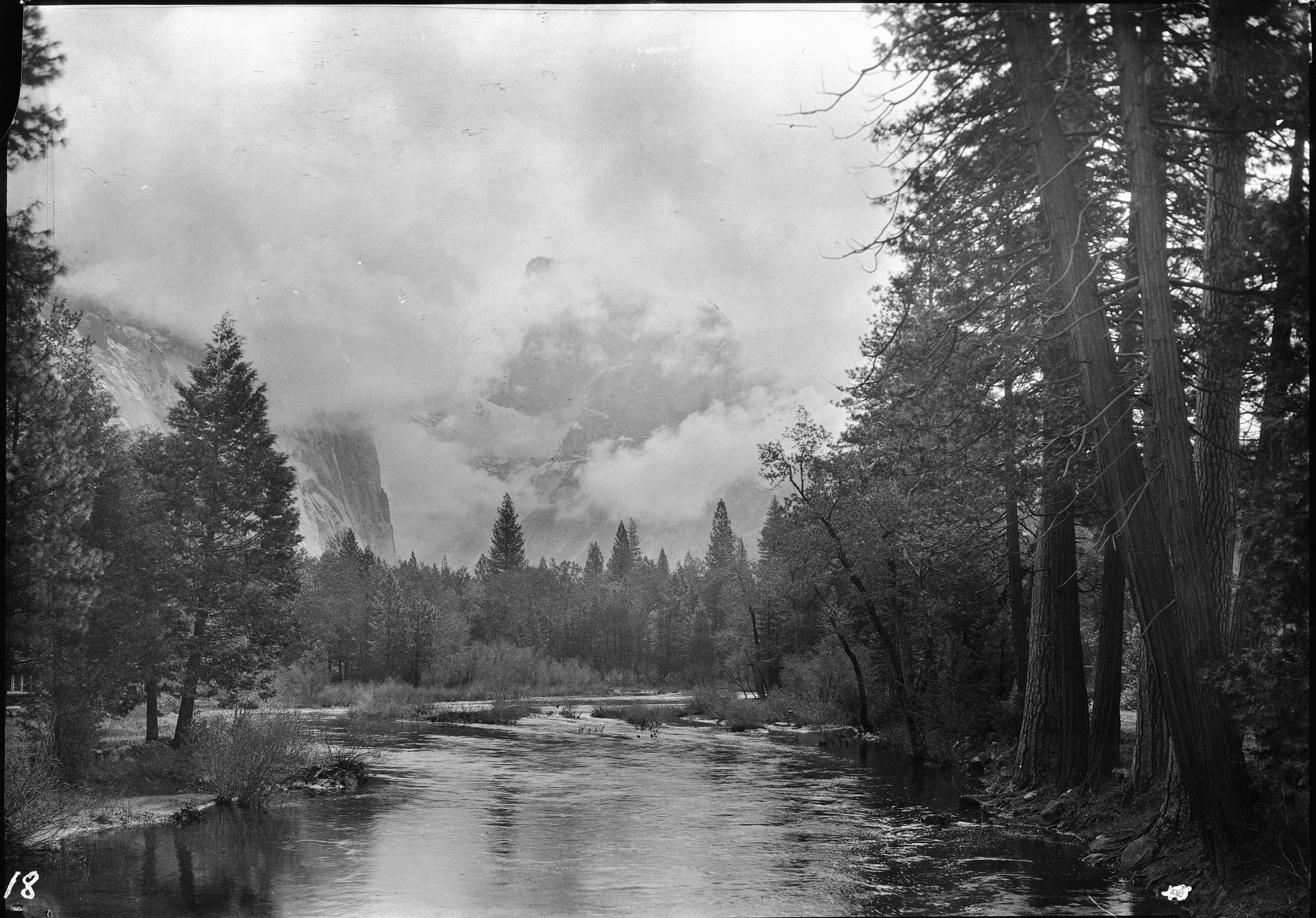 Looking up Merced River from Road near Bridalveil Fall.; Copy Neg: Leroy Radanovich, April 1999.