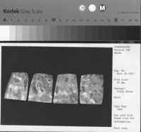Copy Neg: 1981. Front view. "Four abalone Shell ornaments over looked when Blind Tommy (a Nisenan-Maidu) was buried. Found in the ruins of his cabin (1932)." San Diego Museum of Man Cat. No.'s 1968-98-1A-D. Work of Tom Cleanso, a Nisenan (s. Maidu) of Sacr