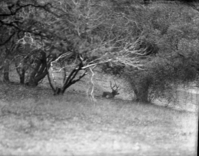 California Mule Deer, wide-antlered buck bedded under buckeye and live oak, December 14, 1934,