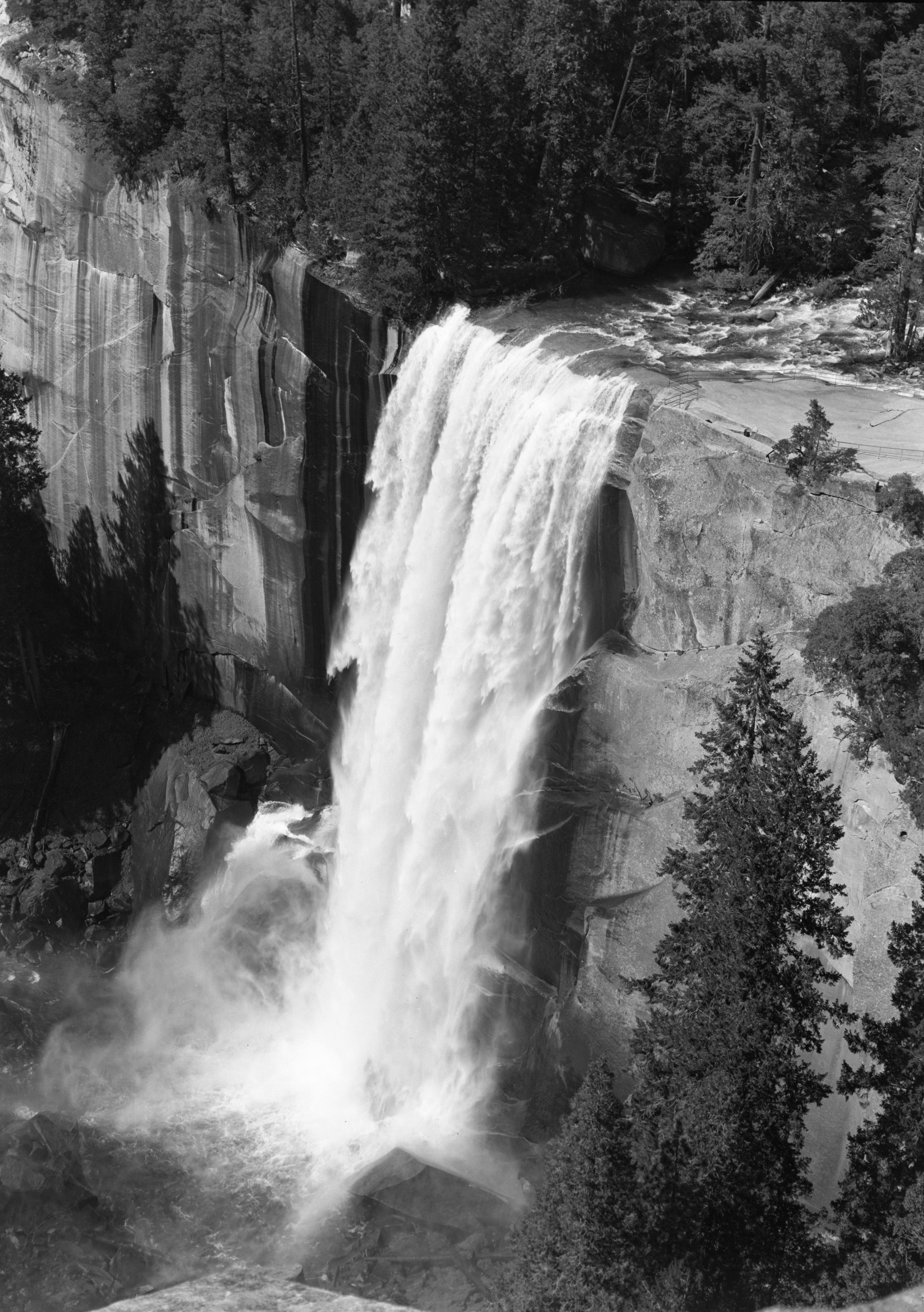 Copy negative of three stereographs. One of Vernal Fall by Thomas Houseworth, two by C. E. Watkins. Copied by RHA in June 1952.