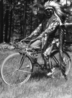 Chris Brown, "Chief Lemee." Plains style war bonnet he wears is in the YNP Collection.