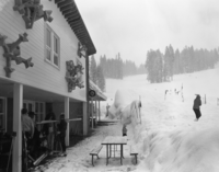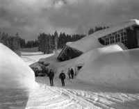 Heavy winter. Badger Pass Ski Lodge, Front Poarch and #2 hill.