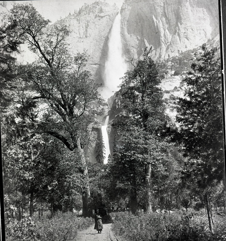 Yosemite Falls. Woman on horse & man in foreground. Copied 1985 by Michael Dixon.