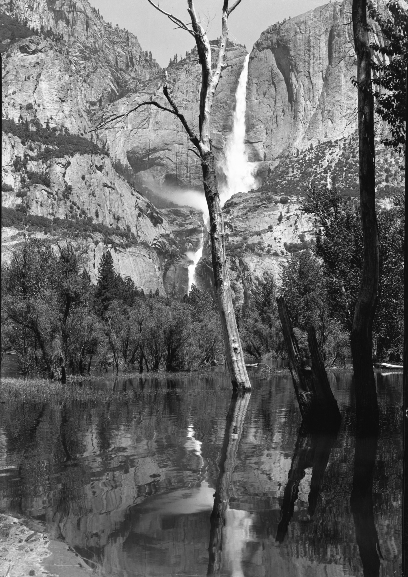 Copy Neg: L. Radanovich, May 1999. Yosemite Falls reflected in water.