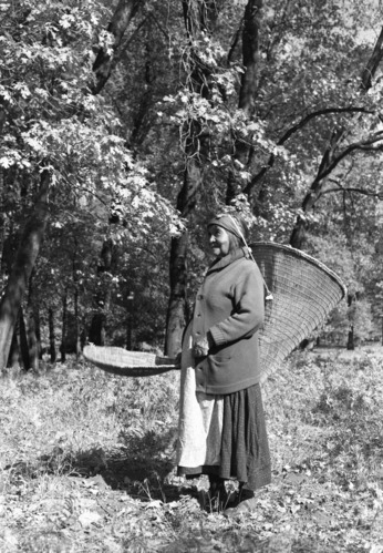 Ta-buce out gathering acorns and grass seeds, Ahwahnee Mdw. 1930's (?)