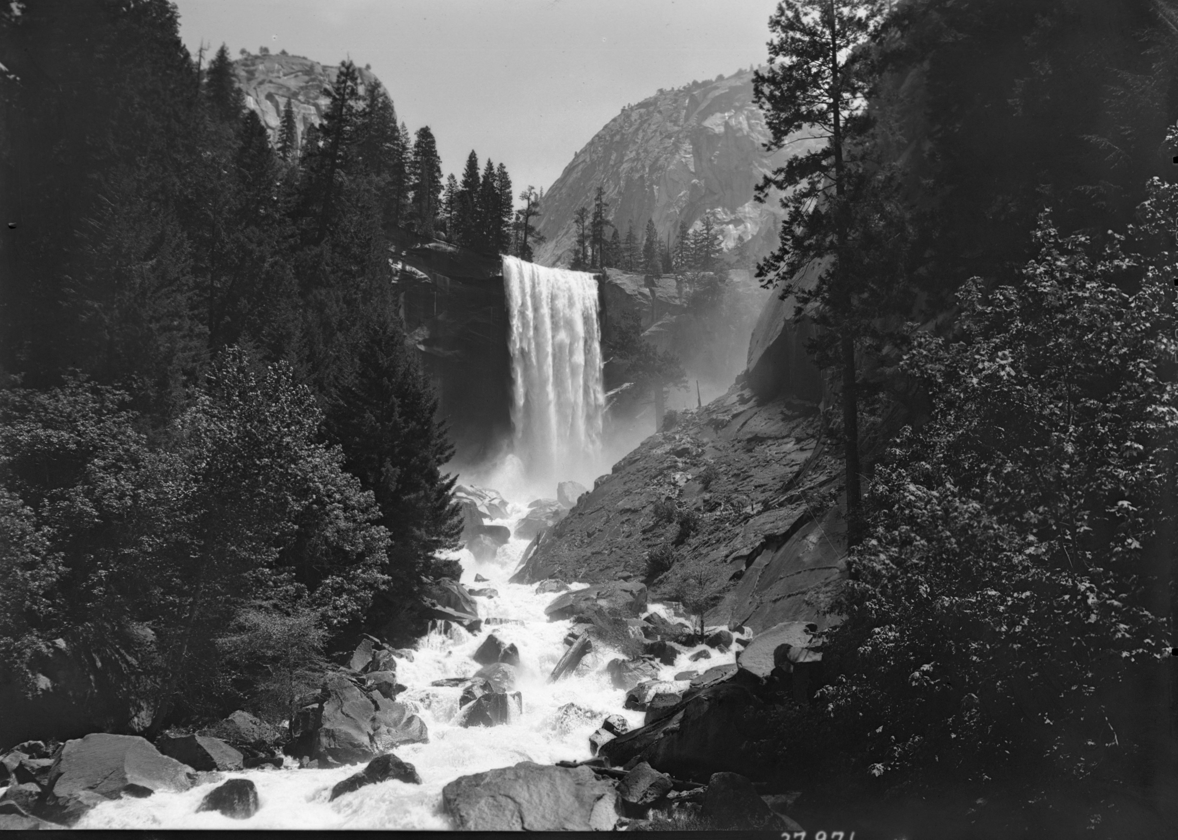 Copy negative of three stereographs. One of Vernal Fall by Thomas Houseworth, two by C. E. Watkins. Copied by RHA in June 1952.