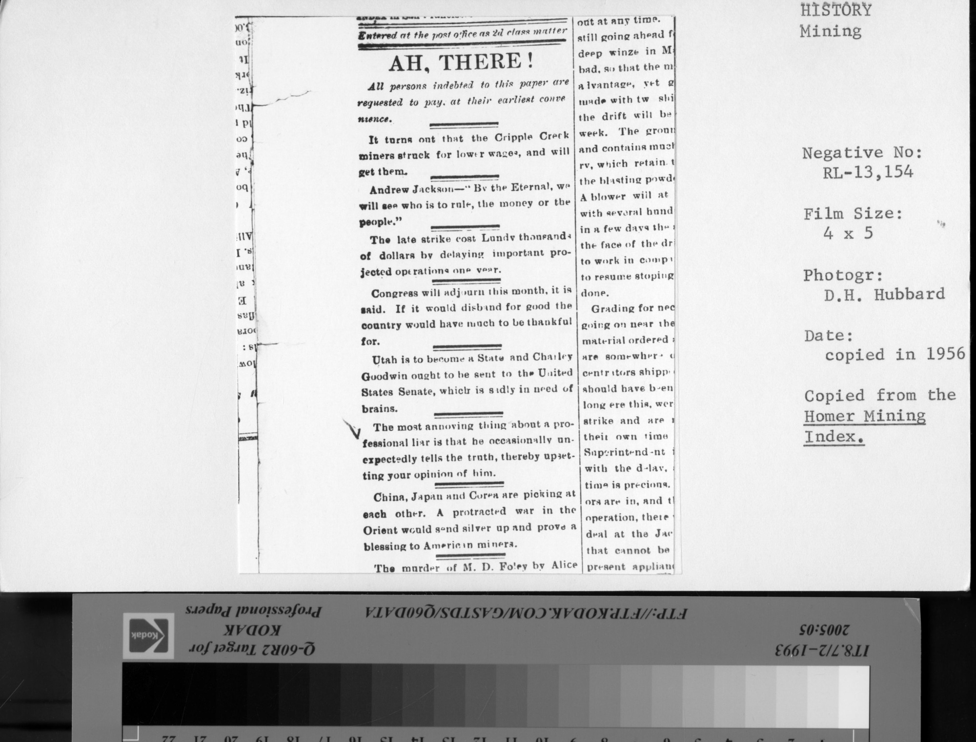 Mining reports copied by Douglass H. Hubbard in 1956.