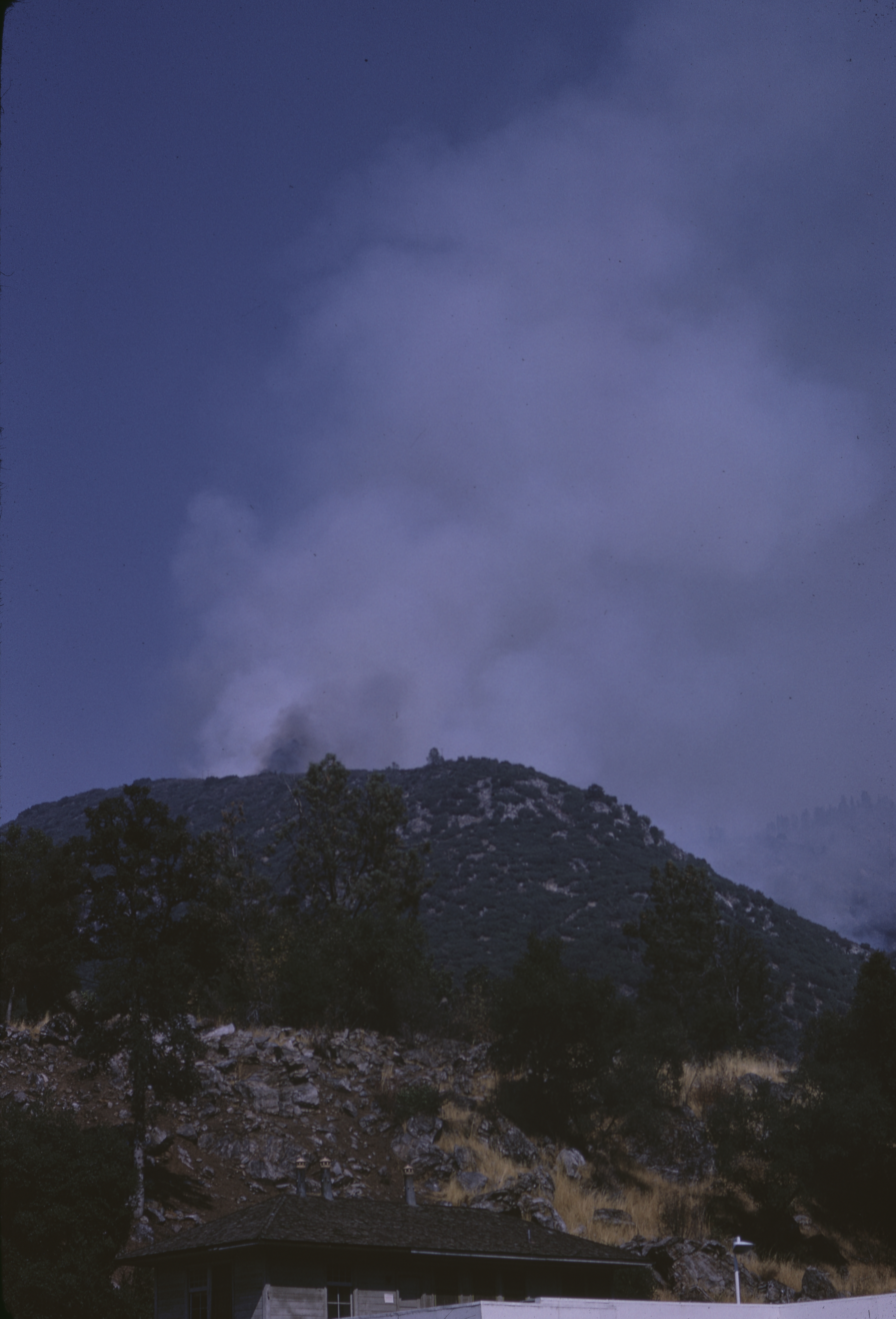 RD87. October 1968. "These all look like the Arch Rk Fire [Arch Rock Fire] but I thought that fire was mid to late summer". [Heavy smoke from fire near either El Portal or Arch Rock]. Robert Dunnagan. J-01-25-087.