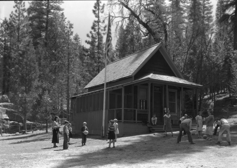 Old Schoolhouse near present site of Le Conte Lodge. Photographer: Julius Theodore Boysen (?)