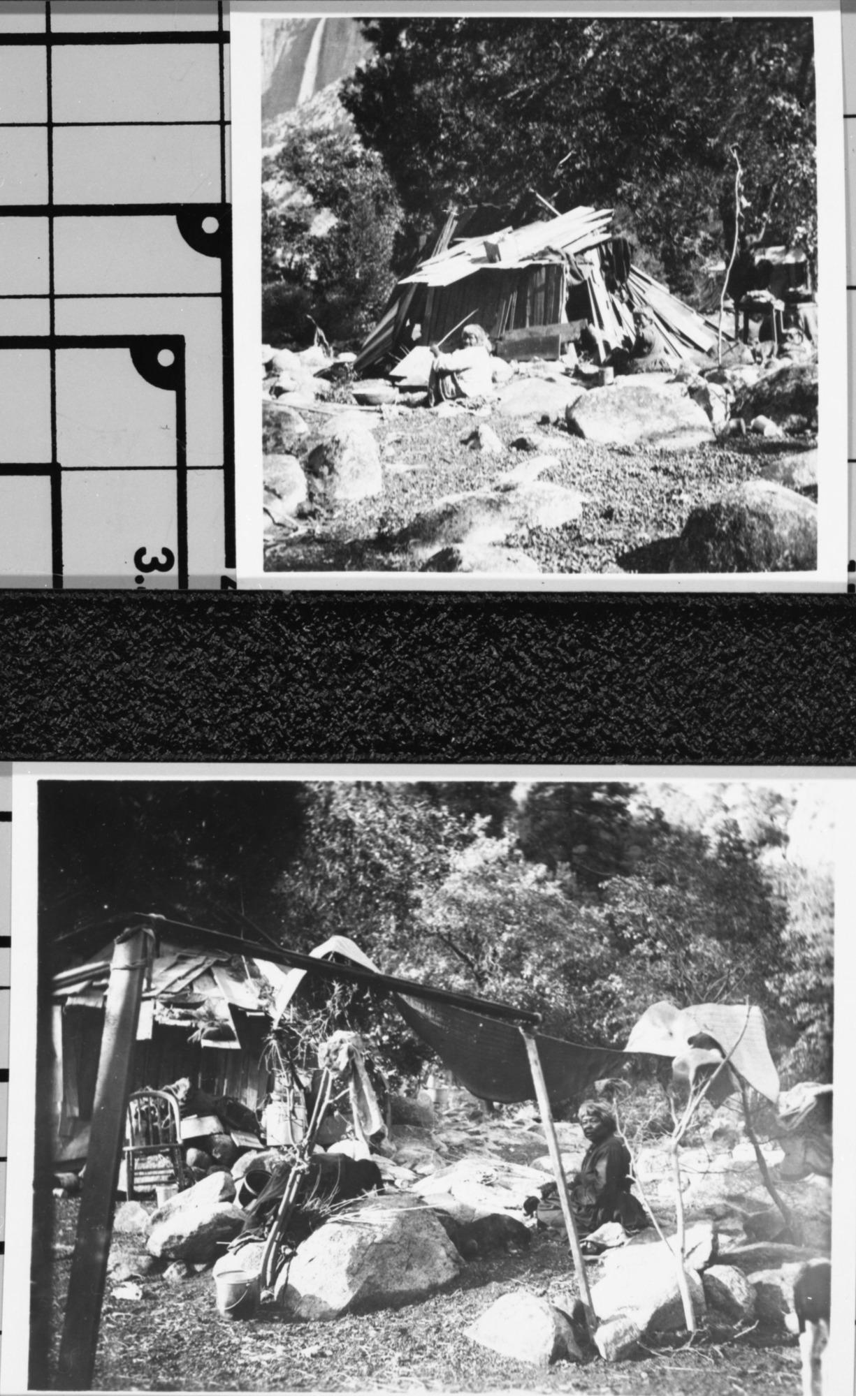 Native American structures in the Wildflower Garden, Yosemite Valley. Consider for Exhibit Item 2-51.