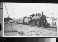 William Stevenson original. Coulterville locomotive pulling ore from the Mar Harrison to the mill about 3 miles down the railroad. copied by Ralph H. Anderson