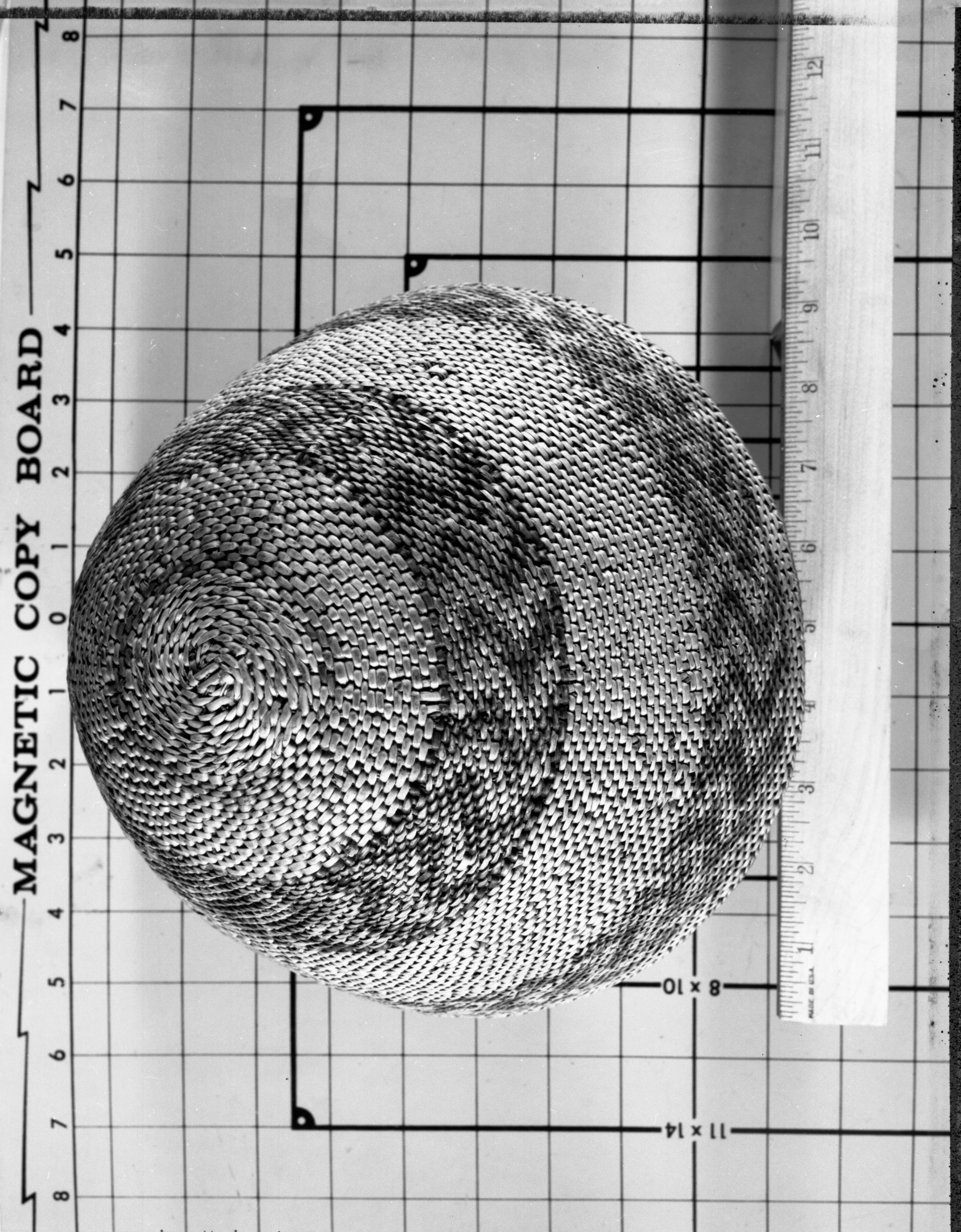 Lucy Telles' big basket in plastic bubble used in display. [30" x 17 " high]