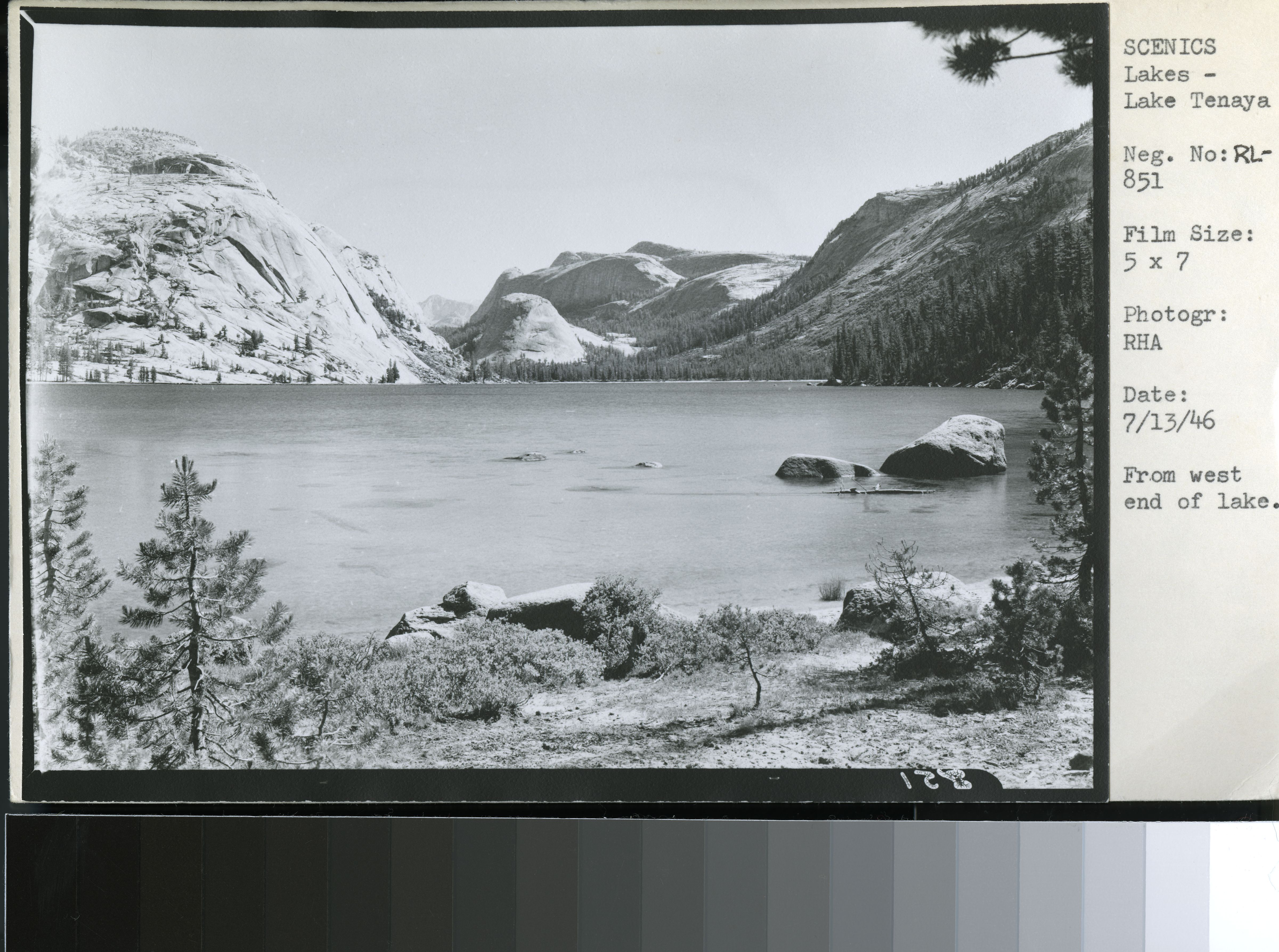 Copy negative of Watkins (?). View of Tenaya Lake. Copied from originals loaned by Francis P. Farquhar.