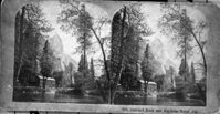 Copy Neg: July 1985 by Michael Dixon. Stereo card from L. Smaus Collection. Original card sepia toned prints on beige card. Caption: "858. Sentinel Rock and Hutchings' Hotel, Cal."