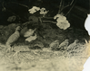 Quail?, [Adult Quail with 3 chicks in front], [Loose Prints, Birds], [Print is damaged; crumbling on right edge.]