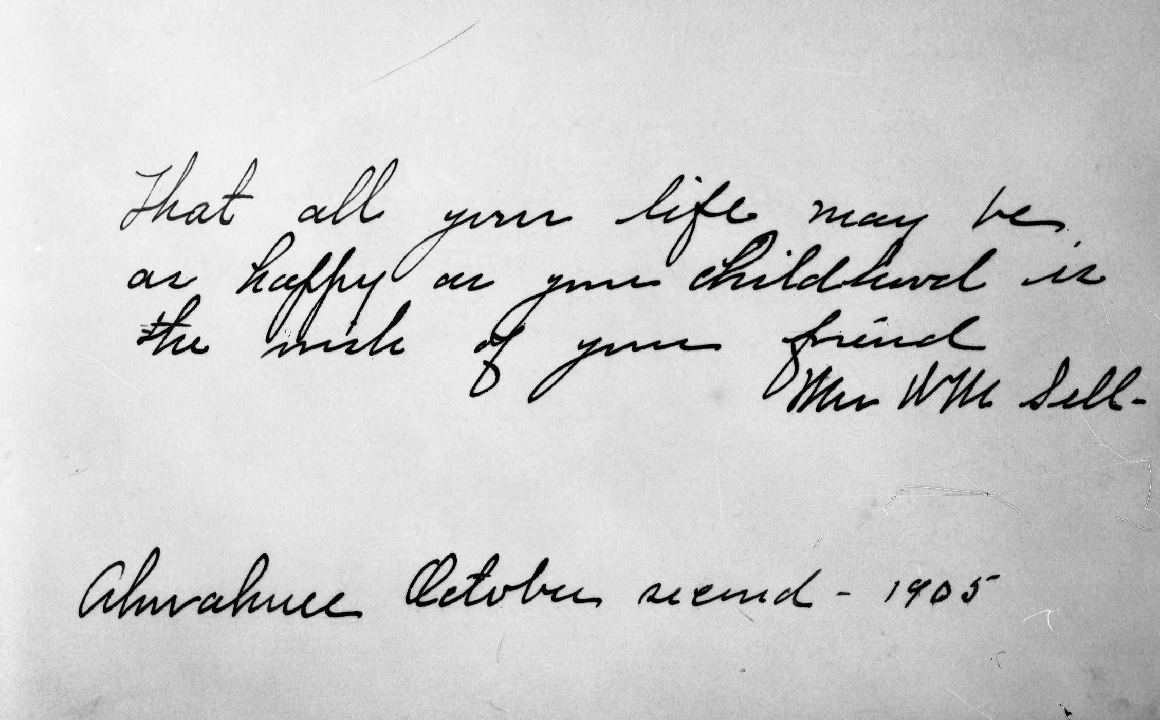 Autograph of Eleanor Sell. Copied from the autograph books of Dorothy & Nellie Atkinson. Copied courtesy Bonnie Douthit. Copied October 1980 by Michael Dixon.