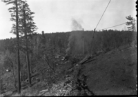 Copy Neg: Leroy Radanovich, September 2000. Yosemite Lumber Co. - South side cut over lands showing trees 18 & 20' high growing in old R.R. grade, rails removed from this grade on April 26, 1917. Museum Collections Cat. No: YOSE 81824