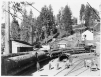 Copy Neg: J. Ernest, 1983. Logging Camp. From negative file of Al Rose.