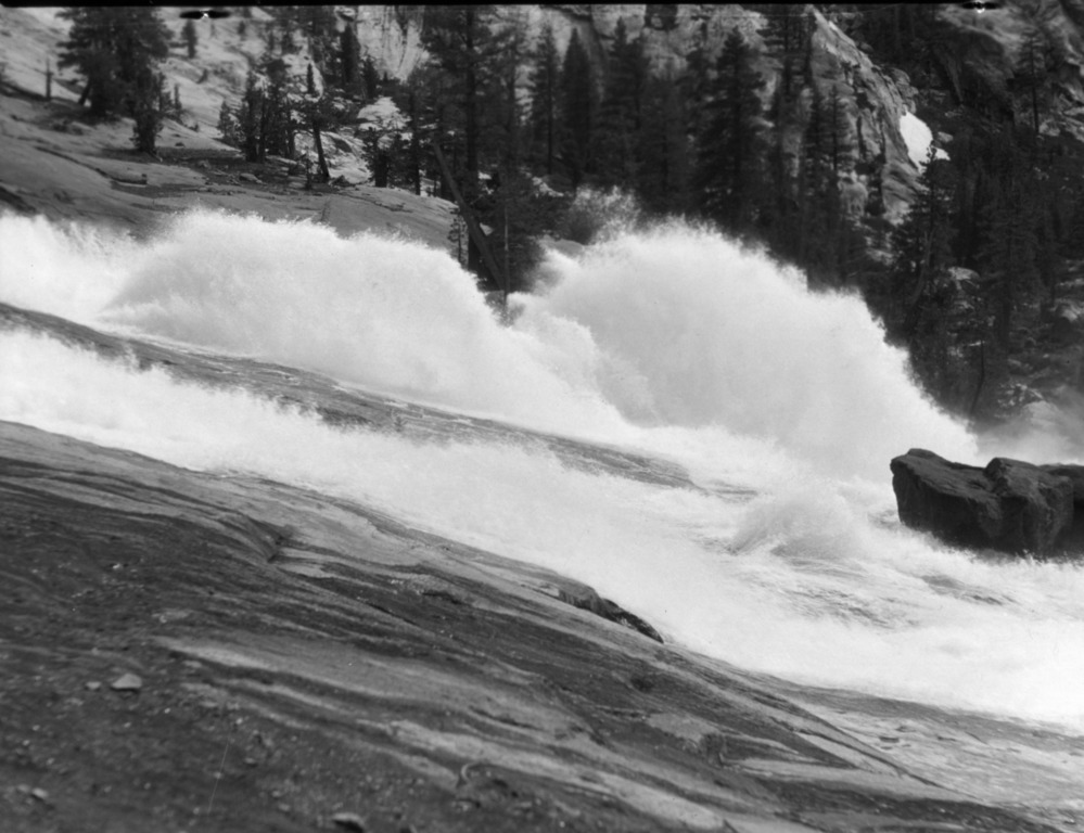 Group at Waterwheel Falls. Left to right: Howard Cofer, Nat.; Miss Kittredge; Mrs. F. Kittredge; Mary Gage; Louis Clark, Ranger; Frank Kittredge; Carol Brockman; Ranger MacIntyre.
