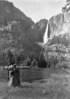 Yosemite Falls. Woman on horse & man in foreground. Copied 1985 by Michael Dixon.