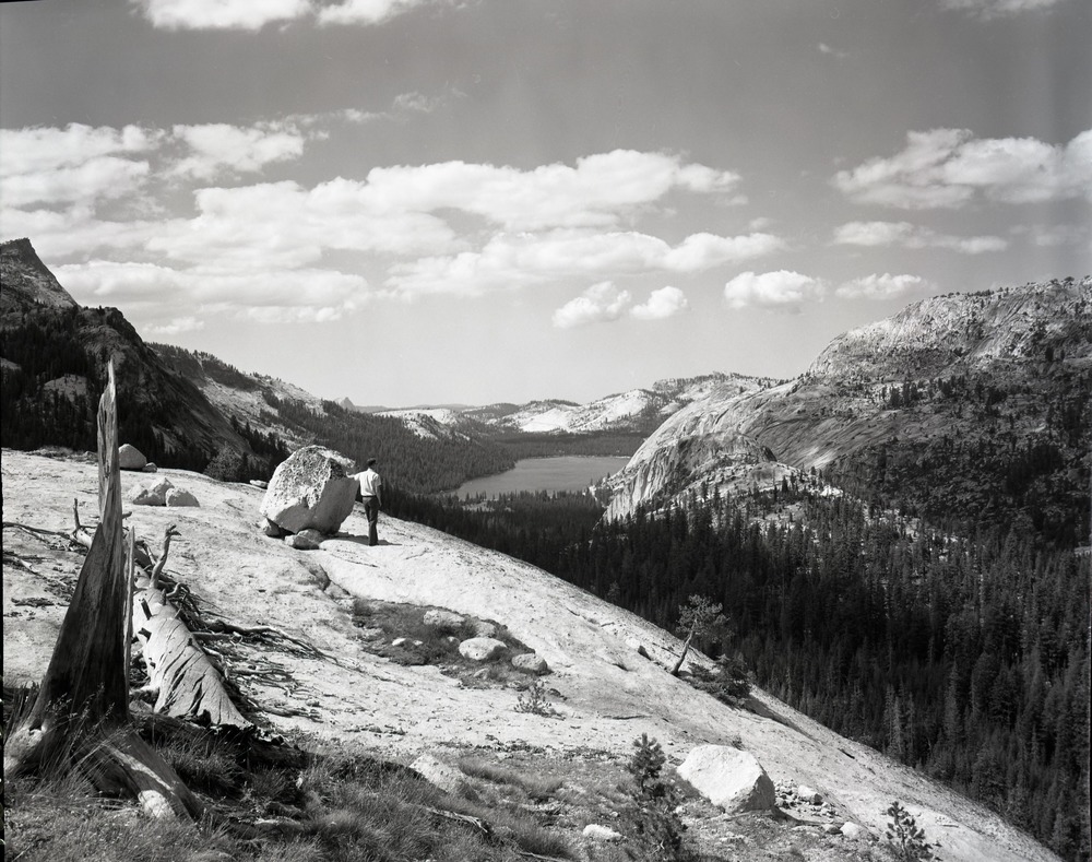Two copy negatives possibly from Watkins originals. Top negative shows Tenaya Lake, bottom negative shows Tuolumne Meadows. From collection of Francis Farquhar; copied 12/November 1951.