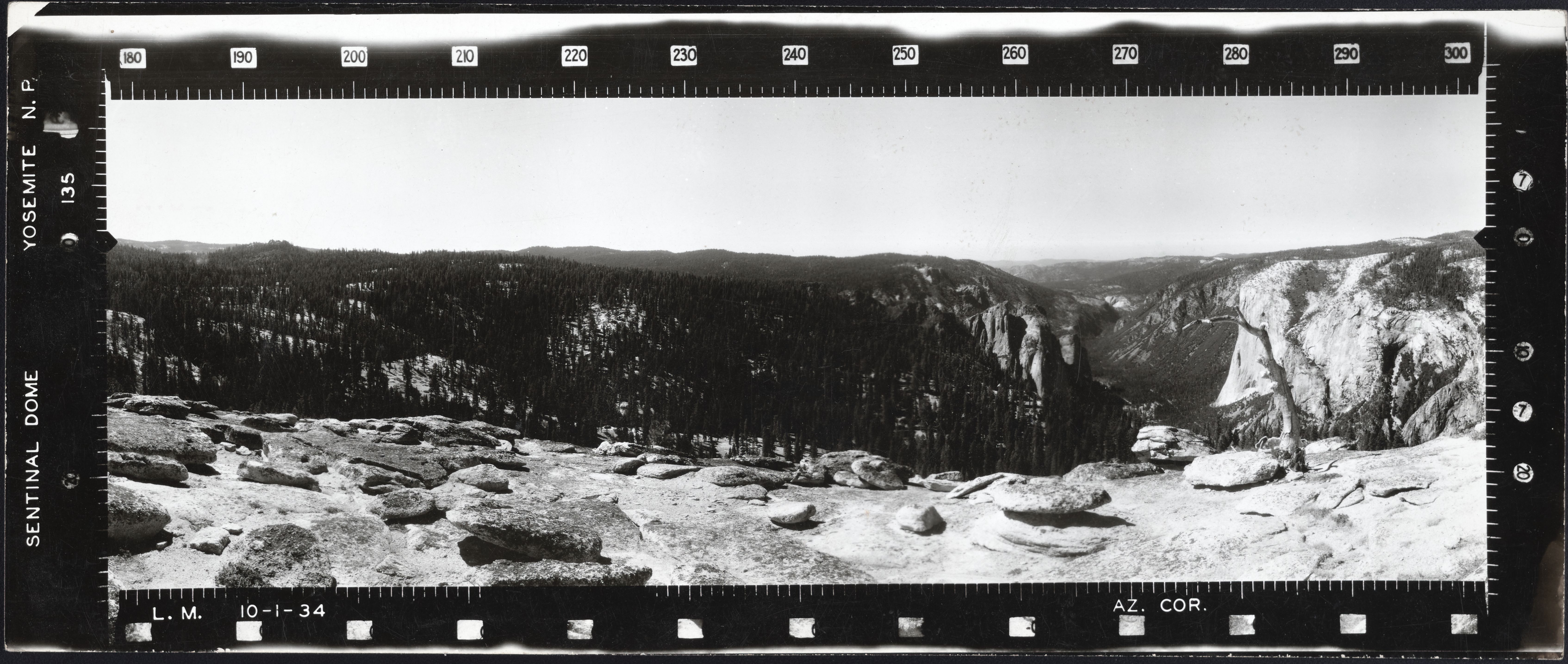 Source: Extended Description Content: These photographs provide excellent documentation of Yosemite’s topography in the 1930s. Covering 120 degrees of the horizon, they were utilized for many decades by Yosemite lookouts to accurately locate forest fires. Today, in addition to conveying information about historic road and trail locations, changes in vegetation and landscape, and geomorphology, they provide a visual juxtaposition to later photographs that is useful for a variety of scientific, management, and administrative purposes.