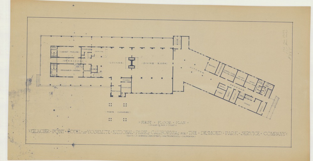 First Floor Plan Hotel at Glacier Point for the Desmond Park Service Company