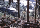 Avalanche Path, C-01-01-031, [avalanche path with trees down; boulder, snow-covered mountains, and trees in background]
