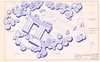 Close-up site plan of ice rink building with surrounding trees and parking (never built)