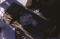 RD115. March 1967. Herb with snow pole; Herb Ewing, Dist. Rgr-3rd generation NPS @ Yose [Distric Ranger and third generation National Park Service at Yosemite]; snow survey tubes. [District Ranger Herb Ewing with snow survey equipment]. Robert Dunnagan. J-01-25-115.