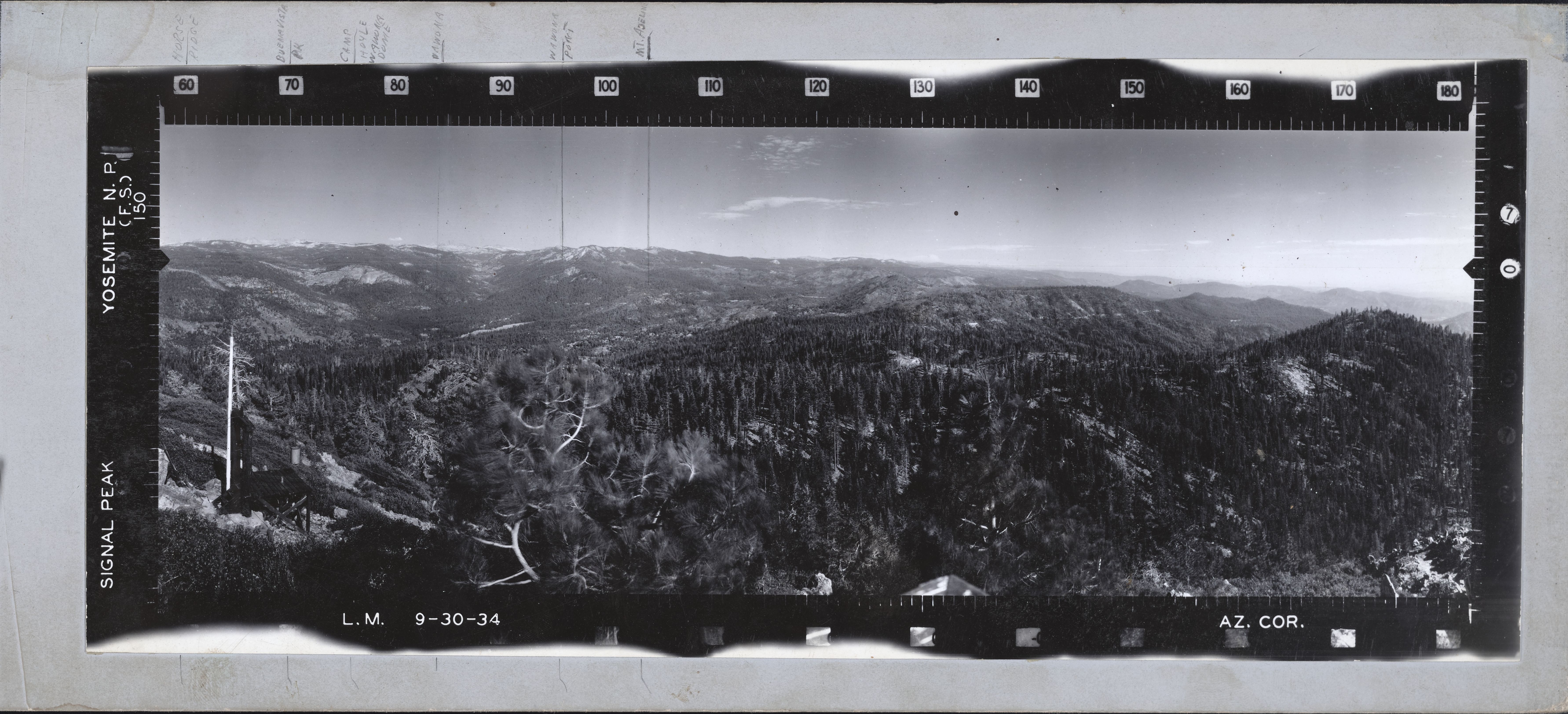 Source: Extended Description Content: These photographs provide excellent documentation of Yosemite’s topography in the 1930s. Covering 120 degrees of the horizon, they were utilized for many decades by Yosemite lookouts to accurately locate forest fires. Today, in addition to conveying information about historic road and trail locations, changes in vegetation and landscape, and geomorphology, they provide a visual juxtaposition to later photographs that is useful for a variety of scientific, management, and administrative purposes.