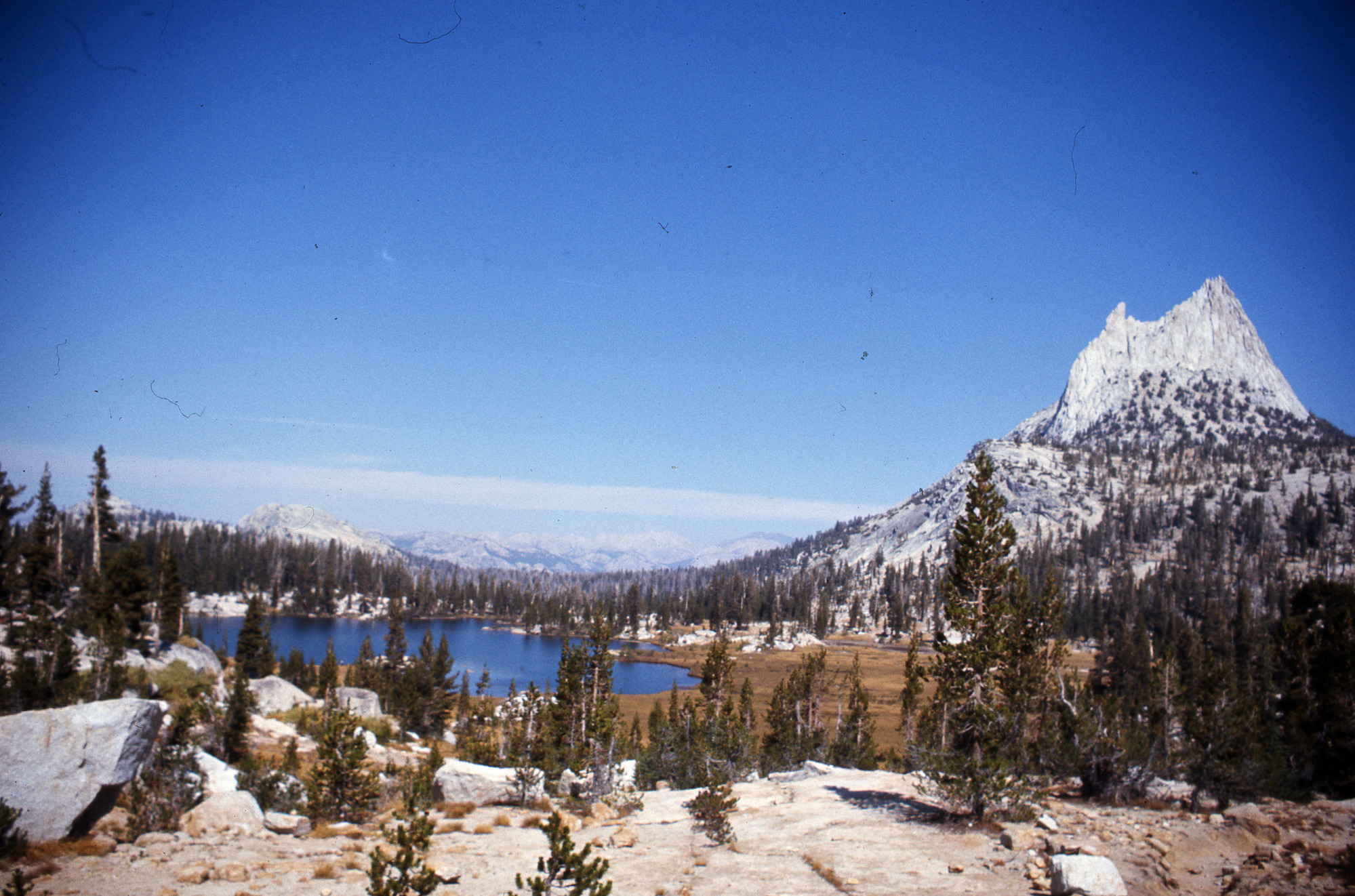 25.8 Cathedral Peak and Cathedral Lake. Unk [Unknown photographer] 1974. Acc264 [Accession]. A-5313. Zip 1. OR. 9. Original. A-26-08-012.