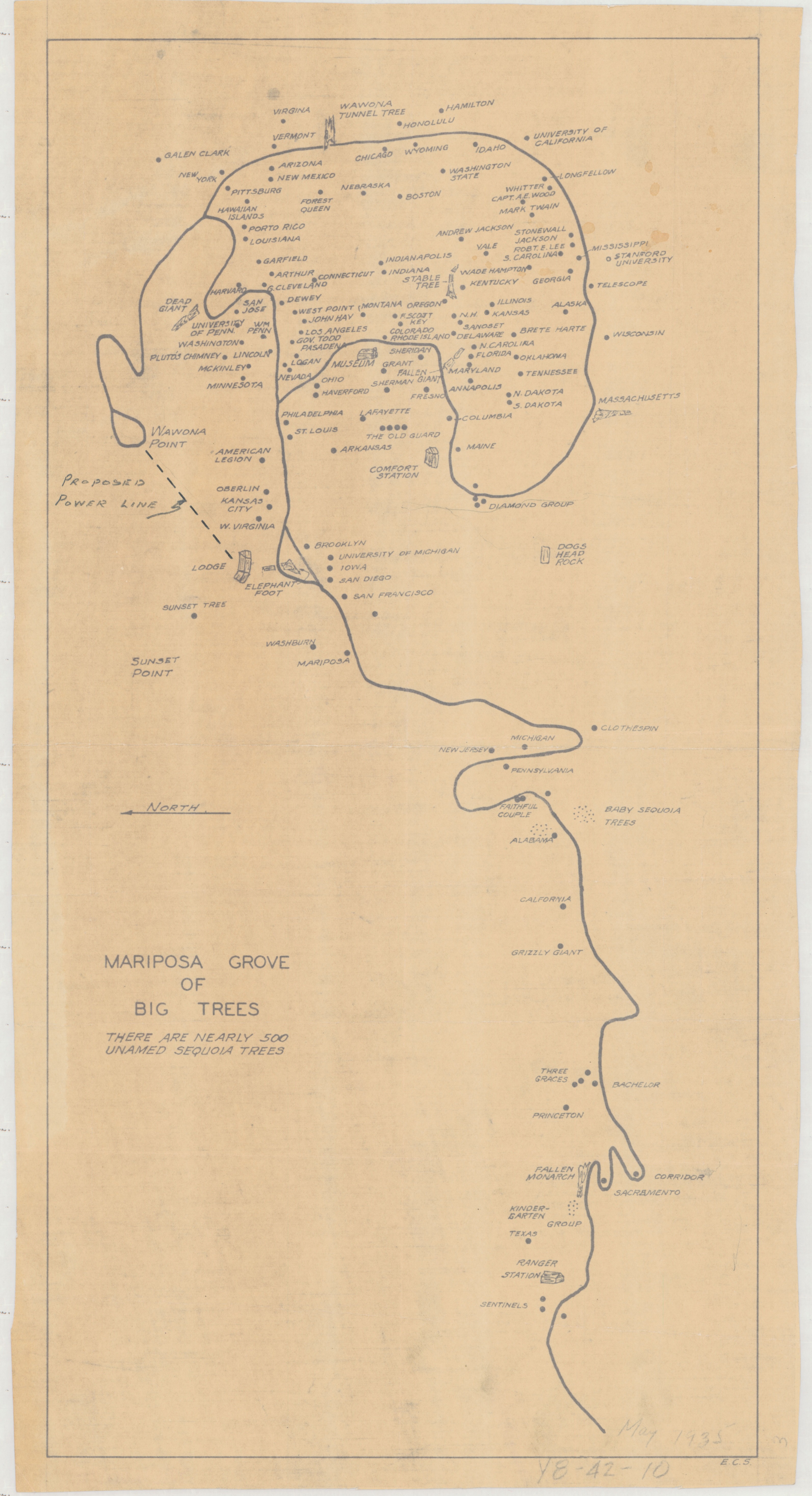 Map of Mariposa Grove with indicated spot for proposed power line