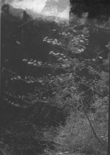 Giant Forest, Sequoia Park 34 2, June 13, 1933, Flowers, Nuttall Dogwood, single bush, vertical, [Nitrate], [damaged]