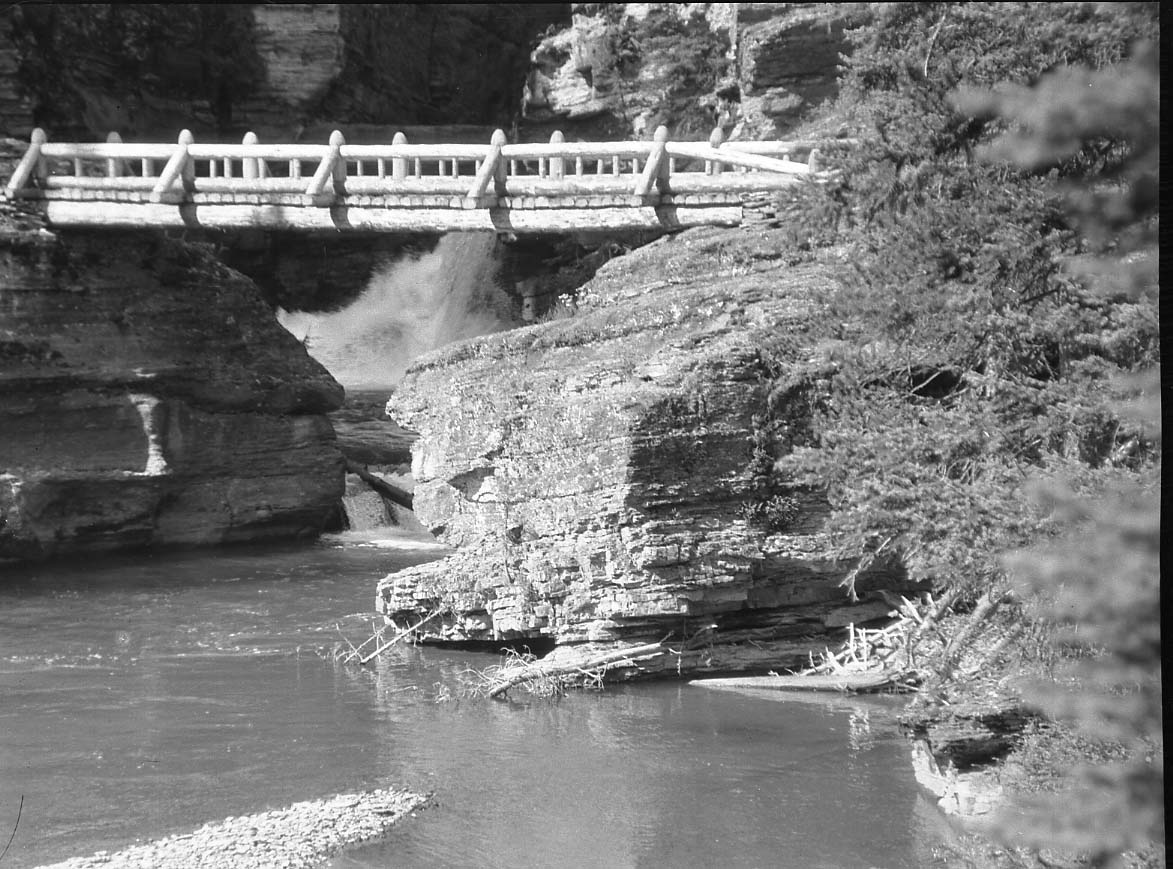 Going to Sun, Glacier Park, 57 3 3x4, Aug. 28, 1931, Falls, St. M, bridge