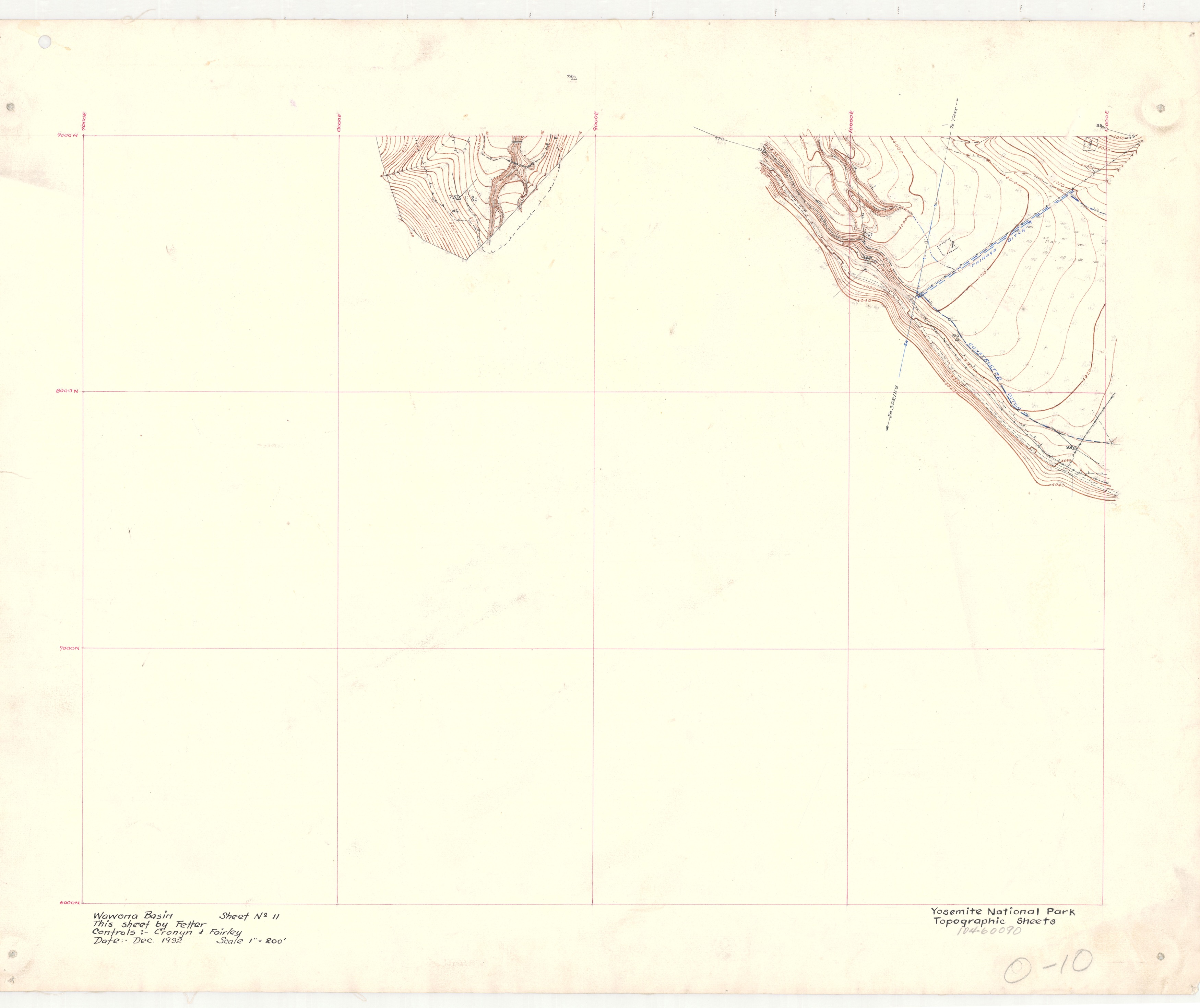 Corner of topographic map of Wawona Basin with ditches labeled and directions to water sources