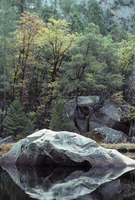 [Reflection of a large rock in Mirror Lake, trees], A-22-079-057