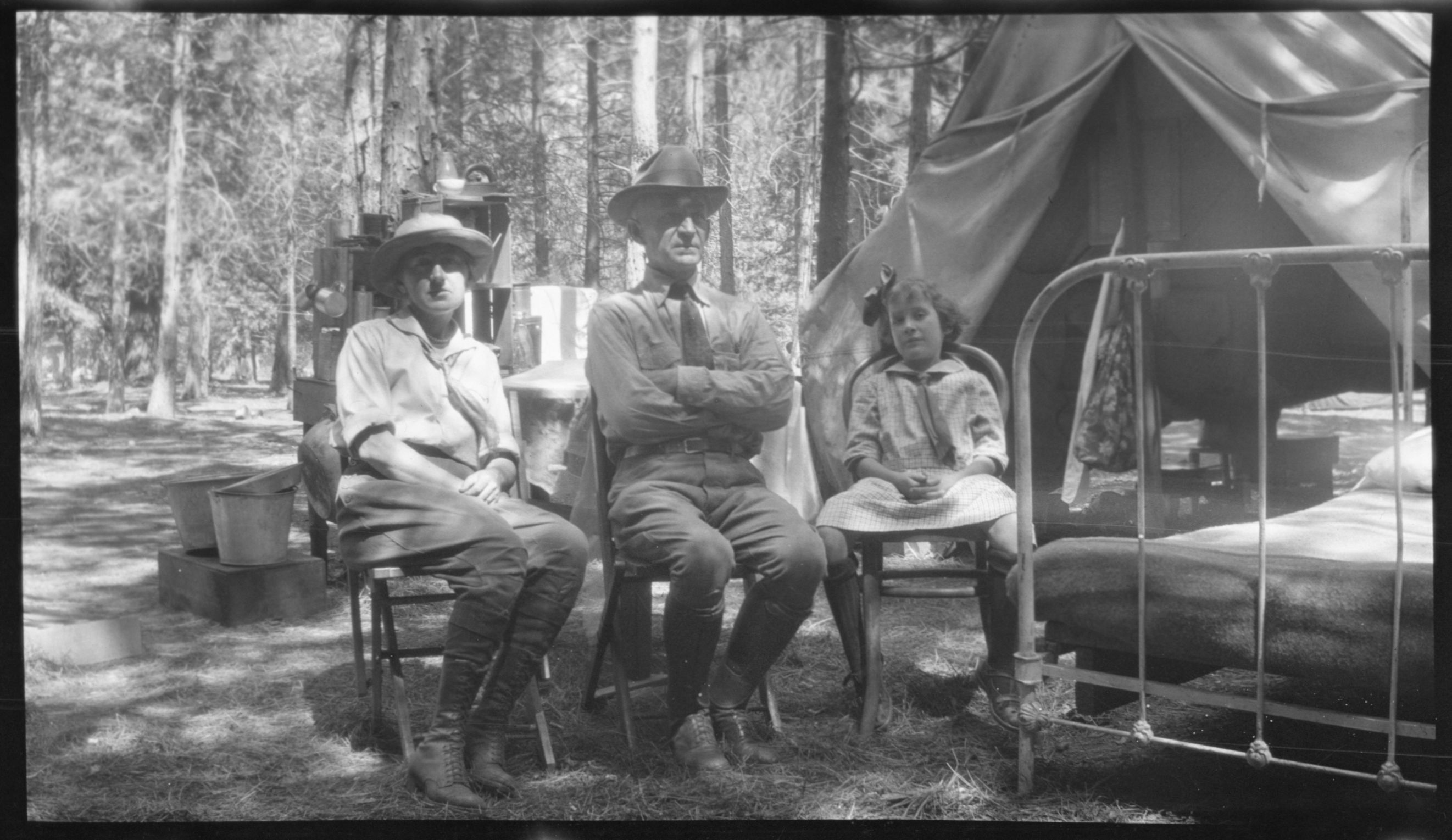 Alice Coolbaugh, Allan Bevans & Jean Coolbaugh in Camp 14, Yosemite Valley. Copied courtesy Mrs. Jean Coolbaugh Blasdale. Copied September 1983 by Michael Dixon.