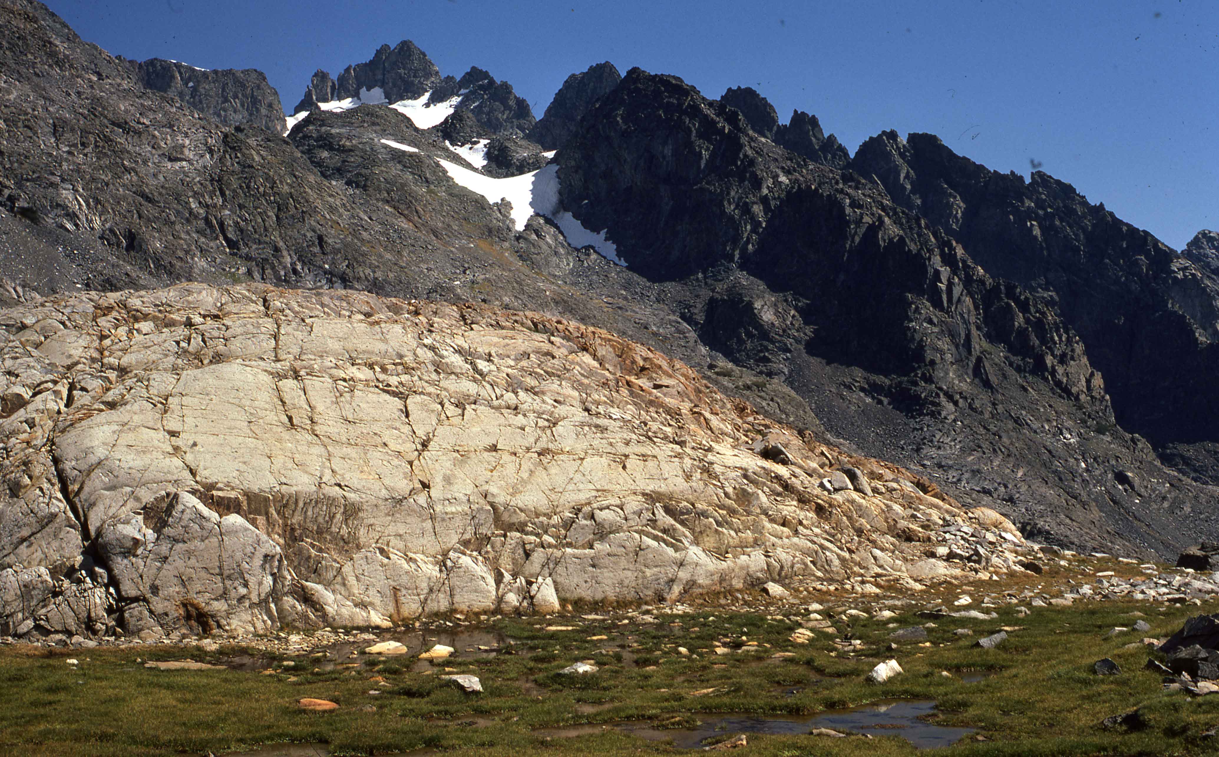 [Peaks - Minaret Range]. Pocket Meadow, Ritter Range. SEP74P5. Yosemite Original. HW [Copyright Unknown]. A-26-43-025