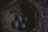 Robin nest with eggs. Photo by R Corver Ruth Cordner. Original. EC-352. Original. 5/26/59 26 May 1959. Copyright Unknown. Birds - American Robin. E-03-63-022.