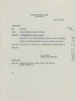 Source: Extended Description Content: Annual Reports are official correspondence highlighting special events, park improvements, yearly statistics and planning which are summarized by park staff and often contain photo-documentation from project work and occasionally inserted maps/drawings.