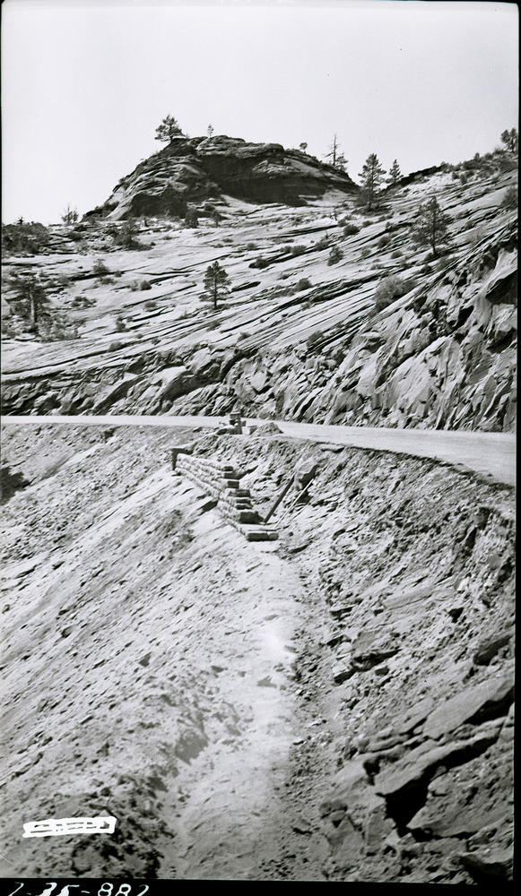 Sunken guard wall below tunnel. ; ZION Museum and Archives Image 002_02034 ; ZION 9460