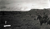 Man on horse in a field of sage and scrub brush named 'hog heaven'. [Appears to be on the Kolob Terrace near Cave Valley?]