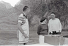 BW Photos of the Crocker/ Nicholson retirement barbeque. Superintendent Harold Grafe in apron at grill with man and woman. ; ZION Museum and Archives Image 800_04_01001 ; ZION 15933