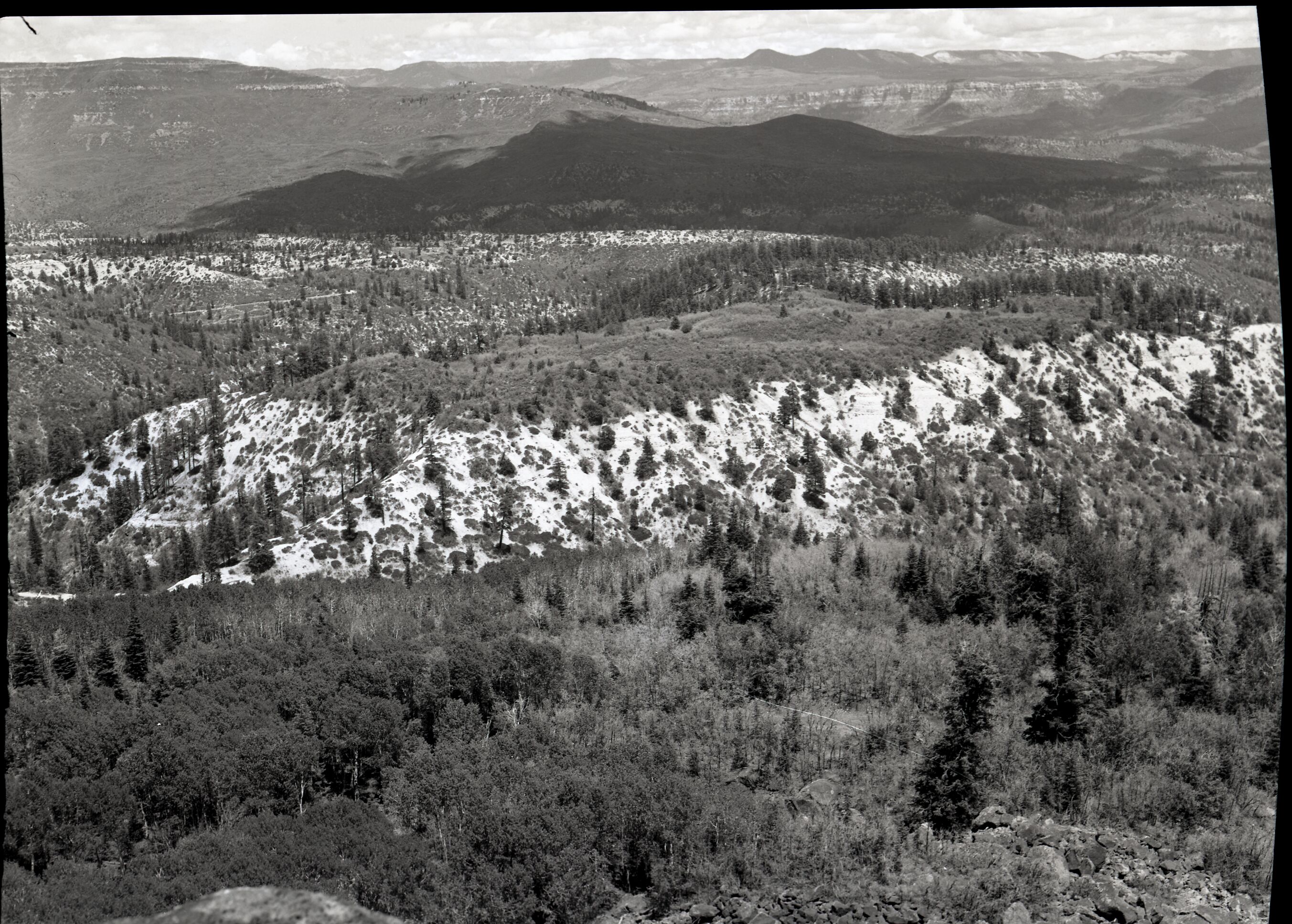 Inspection trip into Kolob area of Langston Canyon where Evan Lee proposed building road to top of the mountain to remove timber. ; ZION Museum and Archives Image 103_04_001 ; ZION 13437