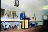 Color Photos of John Lancaster's farewell party at Elks Club in St. George, Utah. Speakers at roast in front of room: Pipe Spring National Monument Superintendent, TWA Steve Tedder, Chief of Maintenance, Chief Naturalist, John Lancaster, Crazy D, Administr