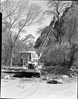 Crane being used in pruning cottonwoods in Grotto Campground. ; ZION Museum and Archives Image 107_02_004 ; ZION 8410