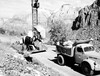 Repair of damage to park road at the hog wall near mount of Birch Creek on Virgin River. ; ZION Museum and Archives Image ZION 13712 ; ZION 13712