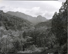Looking west down Taylor Creek towards Pine Valley Mountains - for proposed road construction. [Kolob Canyon] ; ZION Museum and Archives Image 002_08006 ; ZION 7619