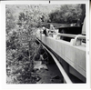 Workers place pipe on side of bridge during the Watchman housing utility project. ; ZION Museum and Archives Image 006.04.13-16of17 ; ZION 15933